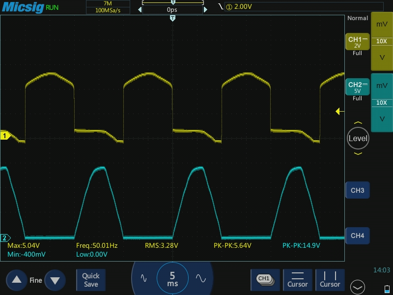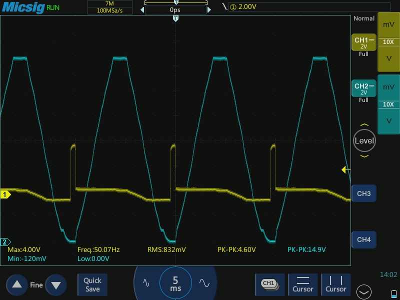 Összeraktam egy graetz hidat, 4db IRF3205Z FET felhasználásával, 4db kis vezérlőpanellel, majd méregettem egy kicsit. A kapott hullámformák hasonlítanak a TINA modellben mértekhez, de nem 100%-ig olyanok (a gyakorlatban kicsit jobbak), valószínűleg azért, mert a szimulátorba nem raktam bele a trafó szórási induktivitását.