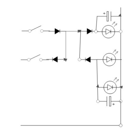 Ahogy visszanéztem, mindjárt rájöttem, hol rontottam el, az elképzelt verziónál a két kapcsoló bemenete természetesen közösített, az a fázis. Amit még kihagytam, a LED-es fényforrások teljesítménye egyenként 13W, a tervezett diódák 1N4007