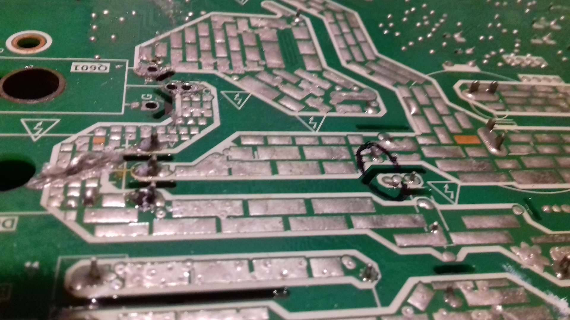 Szia! Köszönöm a válaszod! Közben kiderült hogy zárlatos az Igbt melletti duál dióda is.Igen az Igbt gate felé is át ütött, de vissza felé nem látok ill. nem mérek zárlatot ( attól még lehet ott is baj). Az inverter Igbt-je ez, a fotón Ic601 az Igbt meghajtó 8lábú smd. Az alatt az inverter Ic látható. Érdekes egyébként hogy szinte senki nem javít ilyen dolgokat. Tudom hogy a klímás nem műszerész,de(én sem vagyok az) Ha tudnád hány mikró ,tv,mosógép,erősítő,monitor,co-hegesztő stb javult meg a kezem alatt.