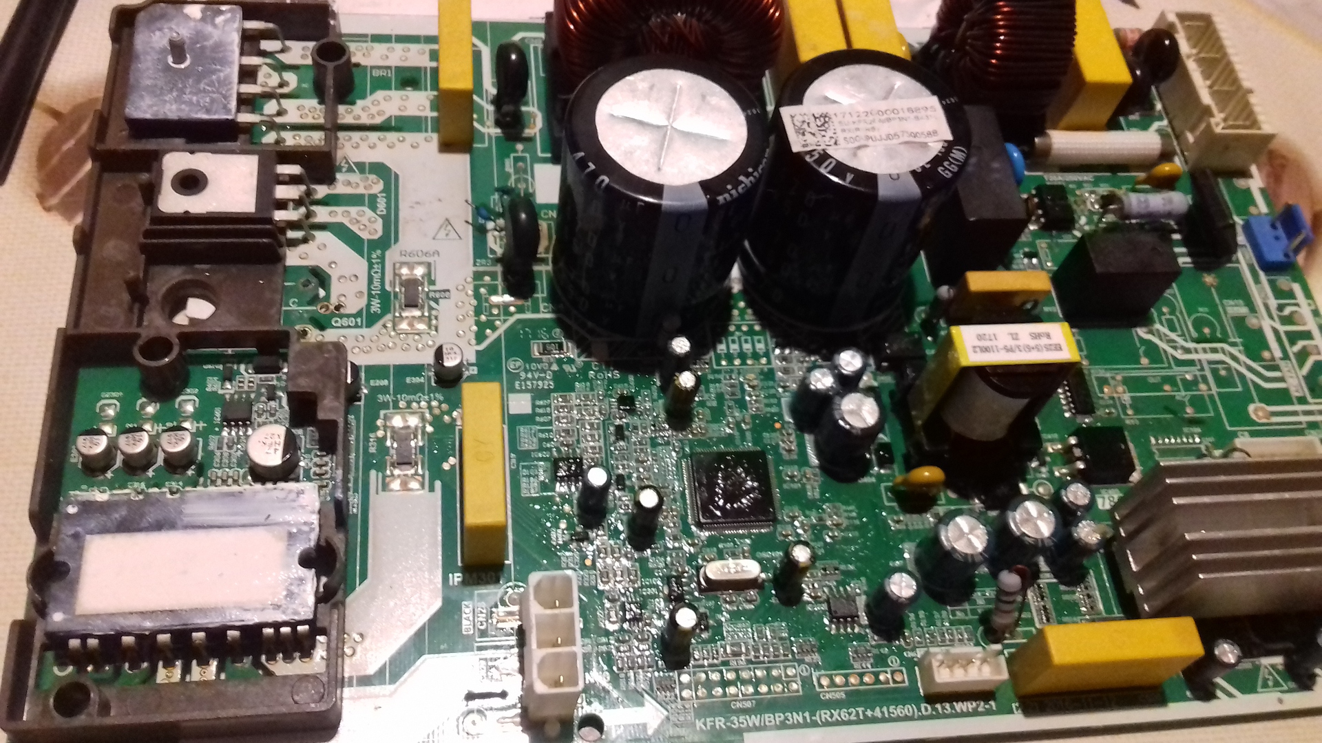 Nem látom jól meg elég kicsi a tapasztalatom, de ha 3 lábú igbt van, akkor az PFC gyanús, nem maga a kompresszor meghajtója, de barmi lehet még