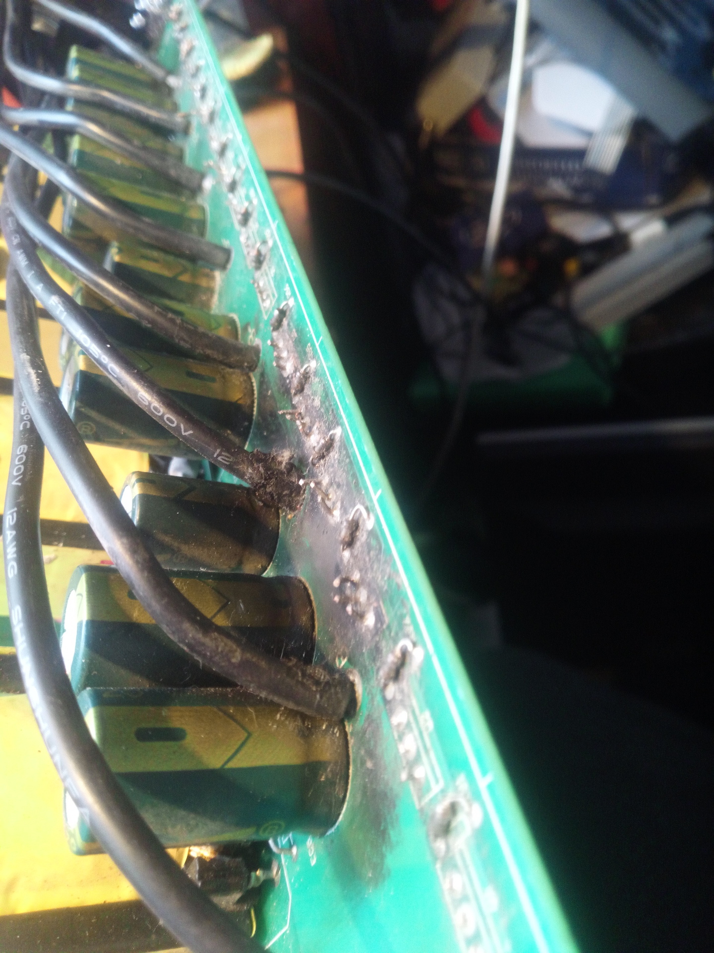 Oda már új panel kell, normális szigetelési távolságokkal kialakítva. Lehet, hogy az 1,6mm-es nyák az keskeny is erre a célra, vastagabb kell, mert áthúz, utána a szén meg már vezet.