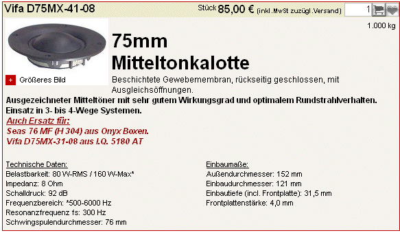 Nemnemnem, a D25-ös dóm már nem kapható, kb. 30 éve nem gyártják, a közép és mélyhsznél is ez a helyzet. Az M kategória a vifánál mindig a legalsó szint volt mélyközépben, a D25 sem volt drága, régen, egy időben a legolcsóbb alap vifa dóm volt (prelu, HB1, stb... őrzik a nyomait), a te D75-öd is az olcsó kategóriába tartozott, pl. ez volt a Vidi C100-as hangsugárzóiban is két HA25 és egy D25 mellett (pár éve kb 3000,-ért adta a H2000 darabját, míg el nem fogyott). NNo, szóval a mai adatlapoknak és hszeknek ezekhez a régi hangszórókhoz semmi közük, nem hogy megegyeznének bármiféle jellemzőjükben. A D76 is adatlap szerint még szólna 7k-nál viszont a valóságban már 5-től szépen esik. Előfordulnak ilyenek.