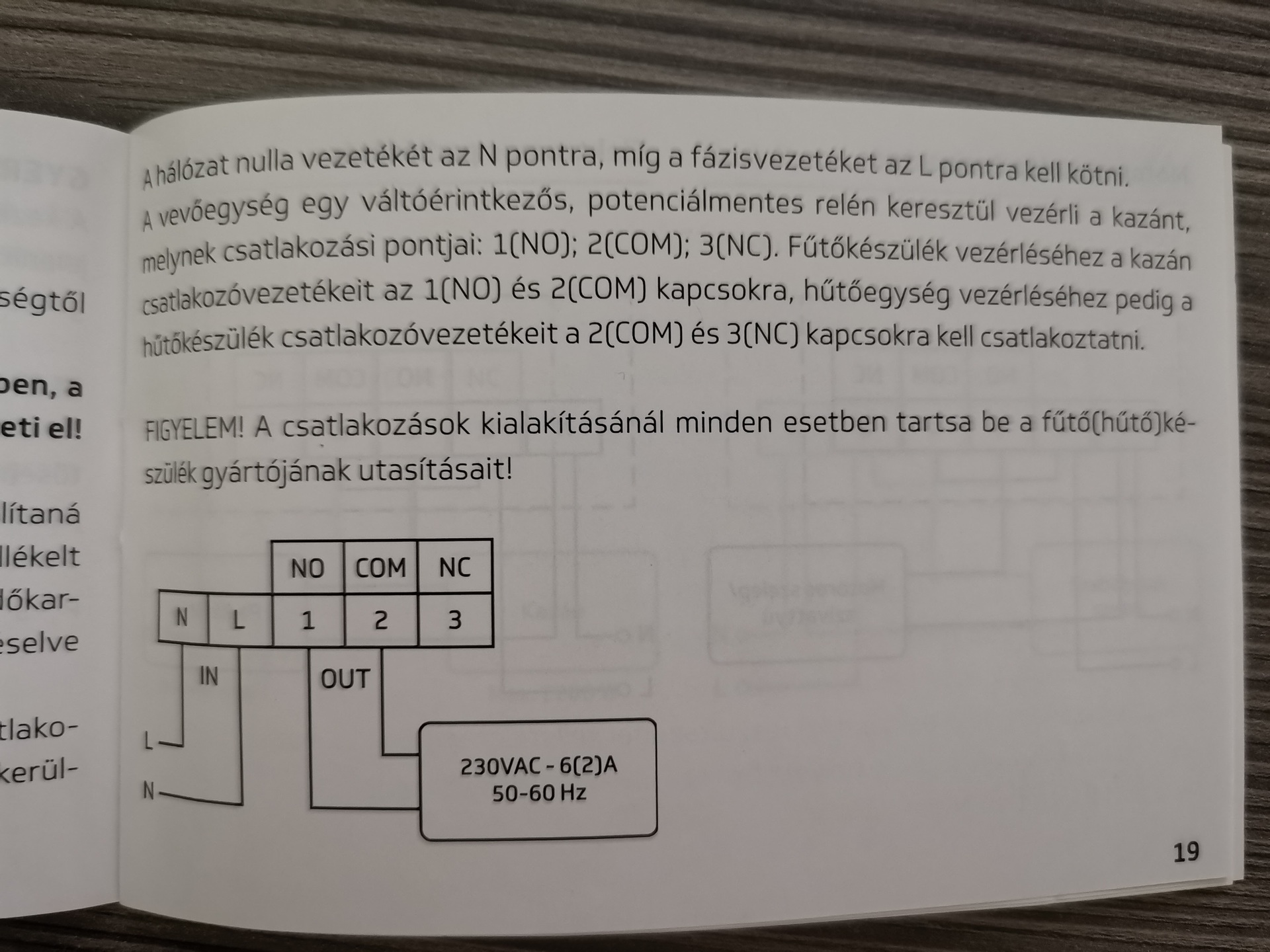 A kék színű vezetéket nem kell bekötni sehova (az a nulla) le kell szigetelni. A sárgászöld és a fekete vezeték az új termosztát 1(no) 2 (com) -ra kell bekötni (mindegy, hogy milyen szín hova kerül). A termosztát cseréjét csak áramtalanítás után szabad elvégezni 230 V~ !