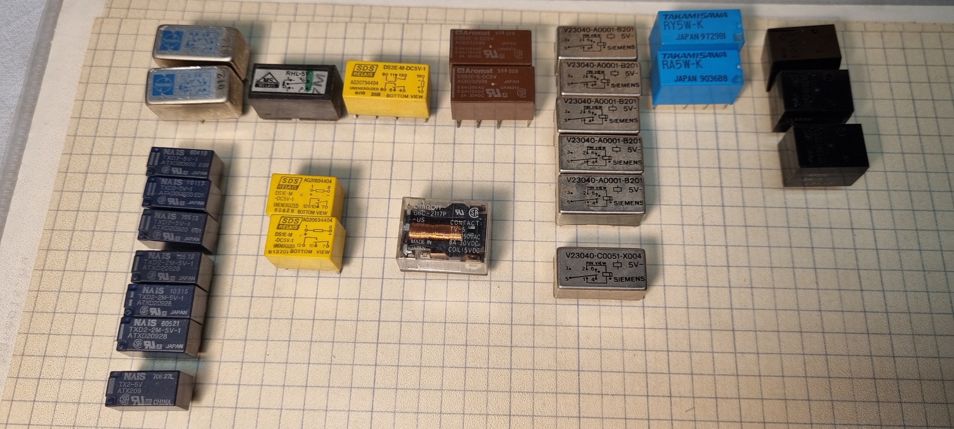 Régi analóg telefon modem kártyákon is találsz ilyen reléket , tokozásuk különféle lehet.
