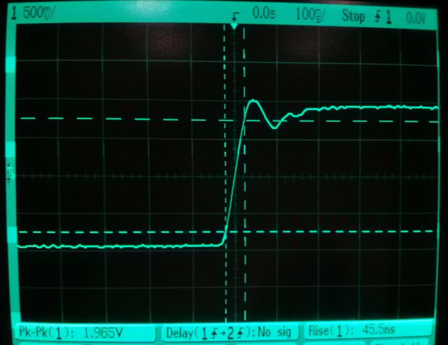 Aztán eszembe jutott, hogy futási idő. Többször leírták, hogy ennek kell állandónak lennie. Mindegy mekkora, de állandó legyen. De meddig? 20 kHz-ig? Szimuláltam, mértem (a kinti kísérleti panelen). A négyszögjel átvitelen is lehet látni a futási időt. De azt nem amikor jó, csak azt amikor rossz (amikor nem állandó). Vagyis... nagyon jó szem kell ahhoz, hogy valaki megmondja, hogy most jó a felfutóél meredeksége - én ezt nem látom - de azt igen ha túllövés van.