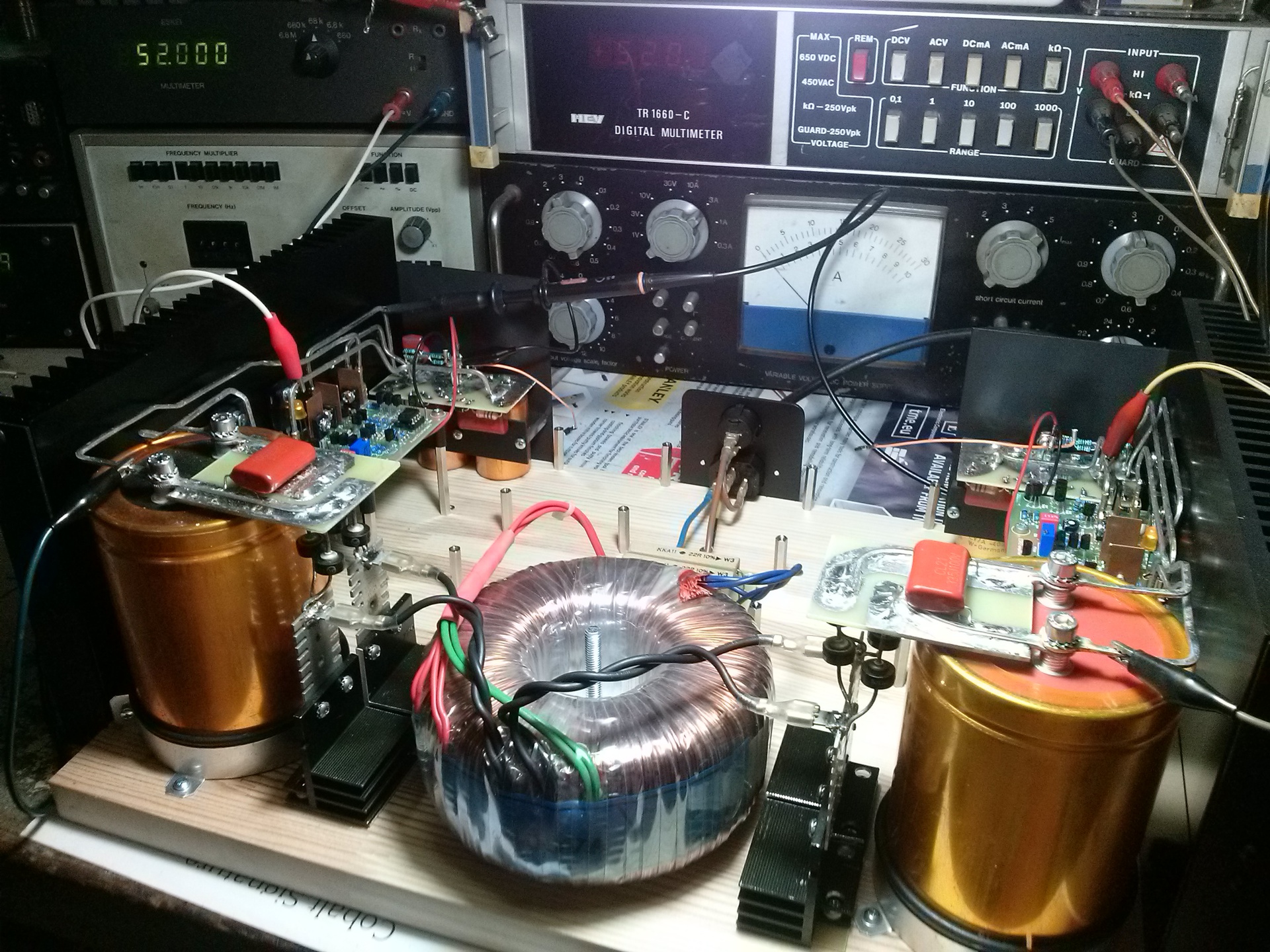 Rengeteg munkám van ebben a végfokban. Ekkora szeretettel, lelkesedéssel és odaadással még nem építettem erősítőt. Jó befektetés volt minden perc amit dolgoztam rajta. Nem szabad elfelejteni, hogy ez a deszkamodell egy szinte nulla forintos, fióktakarításos projekt. De a legjobb alkatrészeim vannak benne. Megismételhetetlen. Nem tudok még egy pontosan ugyanilyet csinálni és nem is akarok. Egyelőre ez lesz az új végfokom. Keresem a hibáit... mit lehetne szebben, jobban, másképpen. Most kicsit kifújom magam és csak zenét hallgatok.