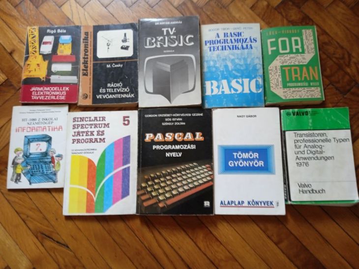 Inkább érdekességként mint tanulásra ![]() Rigó Béla Járműmodelek elektronikus vezérlése M. Ceski Rádió és Televízió vevőantennák TV BASIC Bodó-Gerő A Basic Programozás technikája Lőcs- Vigassy Fortran HT-1080Z Iskolai számítógép Informatika Sinclair Spectrum 5 Játék és program Gordon- Körtvélyesi-Sós-Székely Pascal programozási nyelv Nagy Gábor Tömör gyönyör Valvo Tranzisztor atlasz 1976