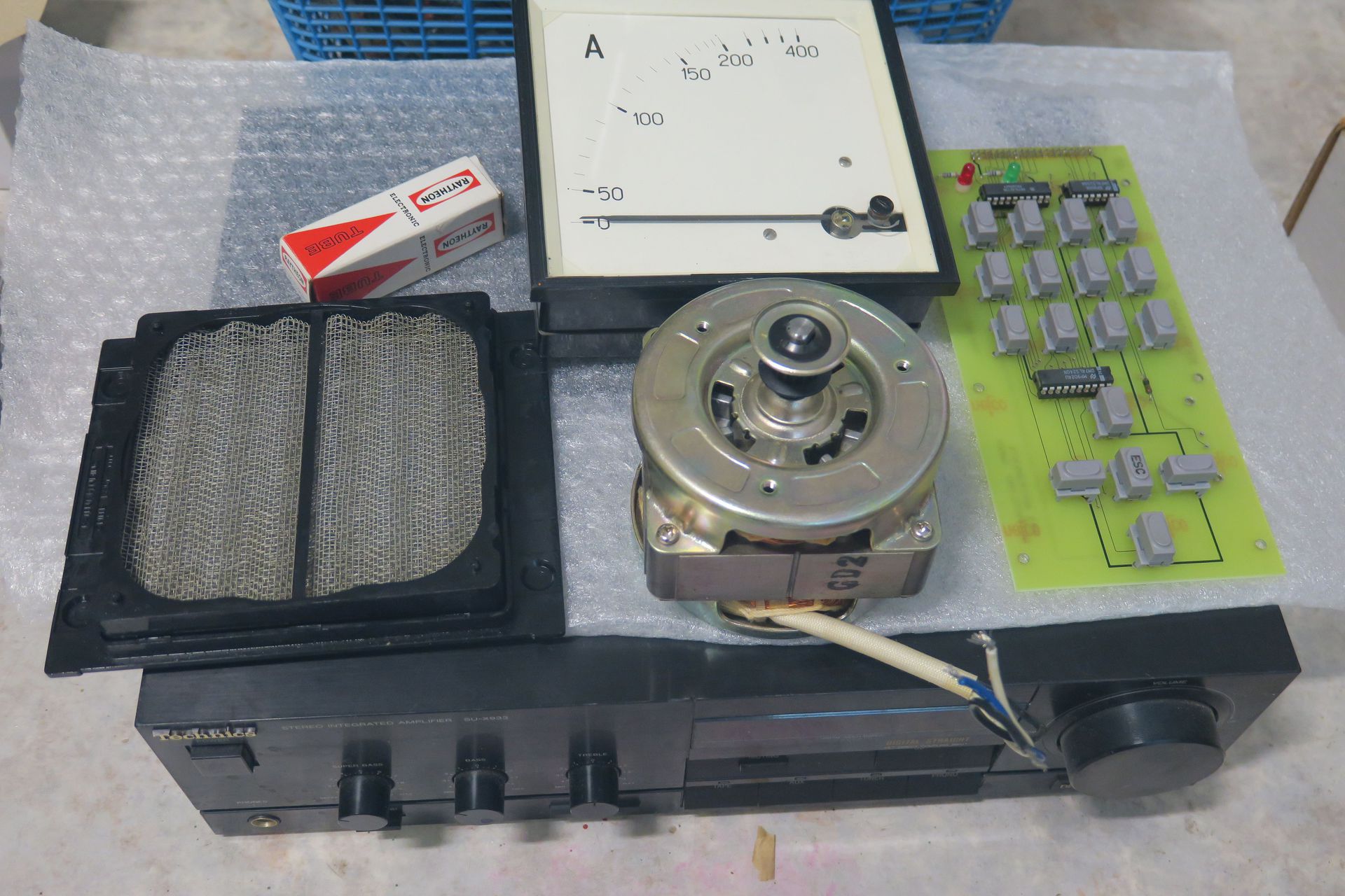 Elvihető, személyesen, egyben. A műszerdoboz elején van egy kivágás de az a lap külön cserélhető. Az erősítő emlékeim szerint nem működik, de talán piszkálva sem volt. A motor talán kenyérsütőgépé lehetett, az viszont ha jól emlékszem működőképes, bár az indítókondiját még nem találtam meg.