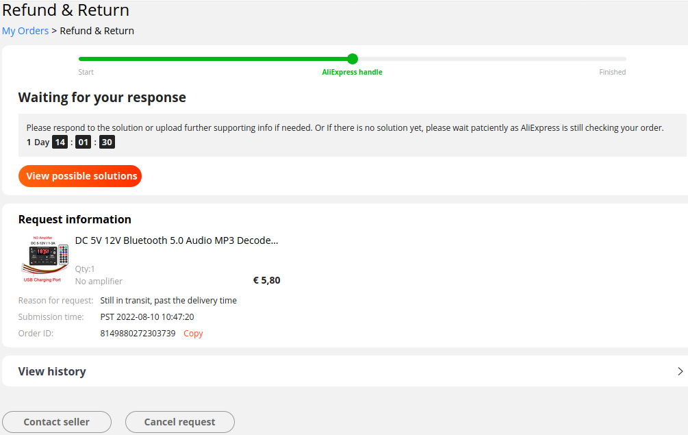 A mostani új felületükön én még nem raklamáltam, de a képernyőkép alapján a narancssárga gombra kattintanék és megnézném mit rejt. Amúgy meg az ali fog közbelépni egy nap múlva.