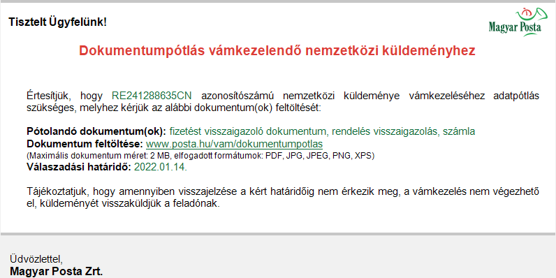 Az egyetlen eset nálam az ott megfizetendő ÁFA óta valamikor januárban volt, s akkor a mellékletben látható e-mailt küldték. Ott feltöltöttem az aliról letölthető invoice papírt, s pár napon belül jött, hogy fizessem a 399Ft-ot, hozzák a csomagom. Érdekes, hogy mióta külön szedik a sarcot a semmittevésért, azóta jobban szeretnek megérkezni a csomagjaim még rajtuk keresztül is. Lehet azért, mert ha már beszedik ezt a pénzt, akkor nem illik letagadniuk, hogy tudnának róla?