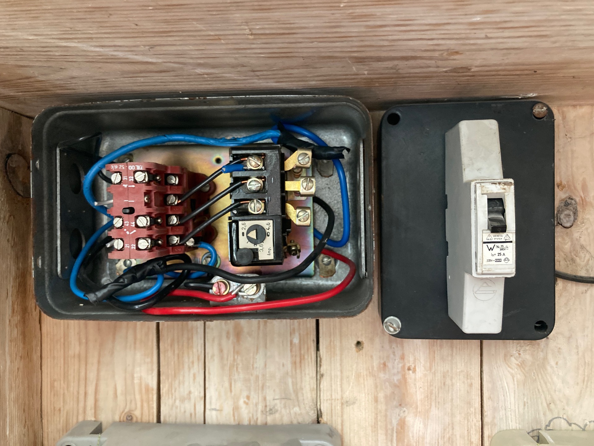 Korabeli "visszaállítható lassú biztosíték 2,6-4.6A-re? Ha rákeresek, az egyetlen értékelhető találat " motorvada kapcsola". A kapcsola sejthető a motor is, a vada bizonytalan. ( bár a gugli fordító lett nyelvről dirigálónak fordítja, legyen ez mondjuk kis jóindulattal vezérlő) Az indító áramot elviseli. 25 A a kismegszakítón zárlat esetére. Ez inkább megszoruláskor lehetett motorvédő. Mondjuk ha a szalagfűrész megállt az akáctuskóban, ami olcsó volt de jó kemény. Régen sokan daraboltak fát téli fűtésre, főleg tuskókat aprítottak vele. Jobb volt mint fejszével kínlódni, ha tudott valaki szalagfűrészt szerezni munkahelyről, ismerőstől, de még bérbe venni is megérhette. A mennyiség indokolhatta a kiépítést, főleg ha bérbe is dolgozott. Az szalag meg könnyen elpattanhatott az erőltetéstől, nem biztos hogy a kezelő elég gyorsan meg tudta nyomni a kikapcsoló gombot és ez a szerkezet akár még a teljes leállás előtt is kapcsolhatott. De természetesen lehetett bármi más gép is. Pl. olyan, ami nem volt állandó felügyelet alatt. És hát akkoriban az sem volt mindegy, hogy a cégnél mi volt éppen mozdítható, így egy motorvédőt akármihez is elkommunizálhattak, de ez ma már tanúk nélkül kideríthetetlen. A távolságot pedig indokolhatja az is, hogy spórolás miatt több végpontot is védett felváltva, ha nem komoly termelésre használták.