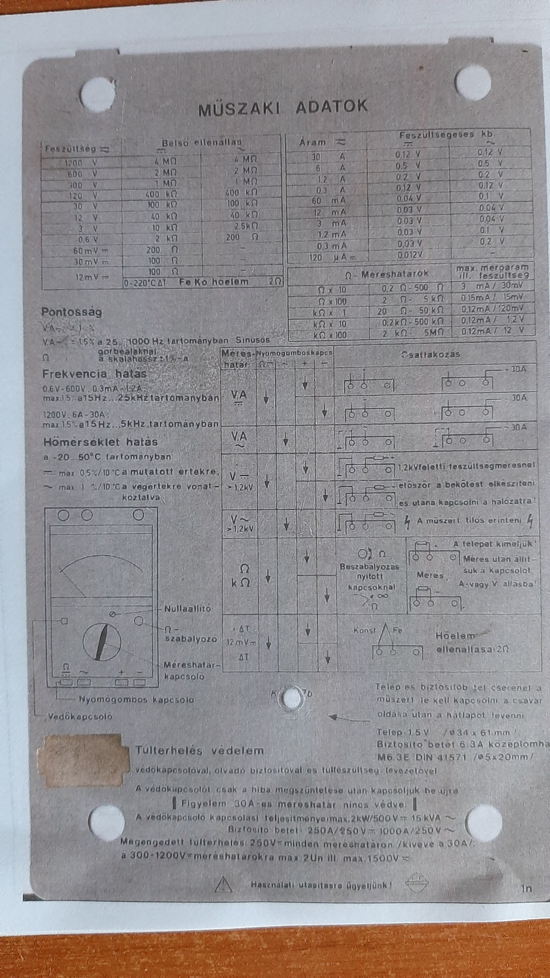Szert tettem egy Ganzuniv-1 műszerre (1, kép), csodálatosmód működik is . Kábelek nem voltak hozzá, anélkül dobták ki, a multimról oroztam el kábelt átmenetileg. Nem is annyira a mibenléte a kérdés, inkább a használathoz kérnék kiegészítést. Méregettem már vele, a 2, képen látható zanzásított haszutmellémafor alapján feszültséget és ellenállást, azonban nem minden tiszta. Na, nem a méréssel, az 1% tűrés környékén van, a 12,6V-os akkut 12,5V-nak mutatja, inkább a kapcsolókkal, kábelekkel nem vagyok tisztában. -a "+" "-" jelű gombok azt jelentik, hogy pozitív és negatív feszültség mérésekor használandó, tehát akkor át kell kapcsolni? -a hőmérséklet méréséhez milyen szondát vegyek? Ha bővebb használati útmutatást is írtok, az is jól jöhet, nem baj, ha az is le lesz írva, amit tudok. A hozzászólás módosítva: Szept 3, 2022
