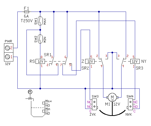 Sziasztok, Ez a relés kapcsolás nekem jónak látszik, de kétségeim vannak: Nekem egy ciszternába gyűjtött esővíz szabályozást kellene megoldanom. A tetőről érkező esővíz útját egy visszacsapó szelepes elemmel oldanám meg reteszeléssel, amit egy ablaktörlő motor végezne. A tartály szintjét két lebegőkapcsolóval szabályoznám, a motort végálláskapcsolókkal állítanám meg a nyit/záz pozíciókban. A kérdésem az lenne, hogy ha az S1-S2 nyomógomb helyére a lebegőkapcsoló fixen kapcsolja a feszültséget, ahhoz mit szólnak a relék? Ha ez gondot okoz, esetleg tudnátok javasolni más kapcsolást? Előre is köszönöm a válaszokat!