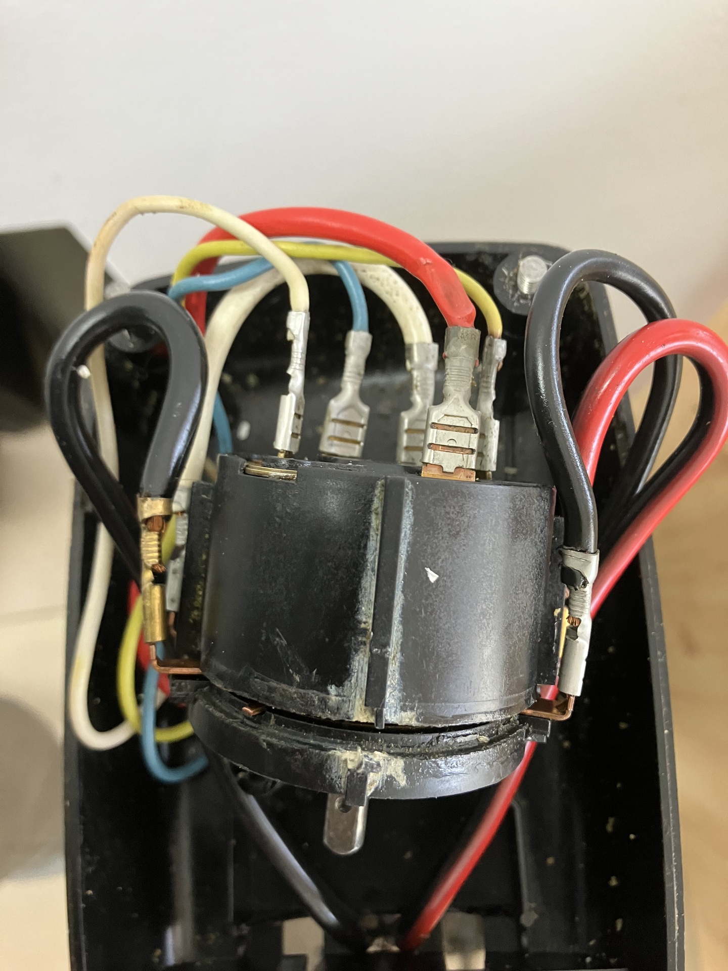 Hello! Anno én is javítottam egy amcsi csónakmotort. Igaz ezen részével nem foglalkoztam, csak a motor csapággyal és a kommutátorral. De a vezérlő elektronika a csigával szemben lent az orrkúpban volt a hűtés miatt és ki volt öntve műgyantával. Tehát a kapcsoló csak a bekapcsolást végezte, a vékony szálak a fordulat-szabályzónak szóltak. Szerintem itt is ez lesz a helyzet..