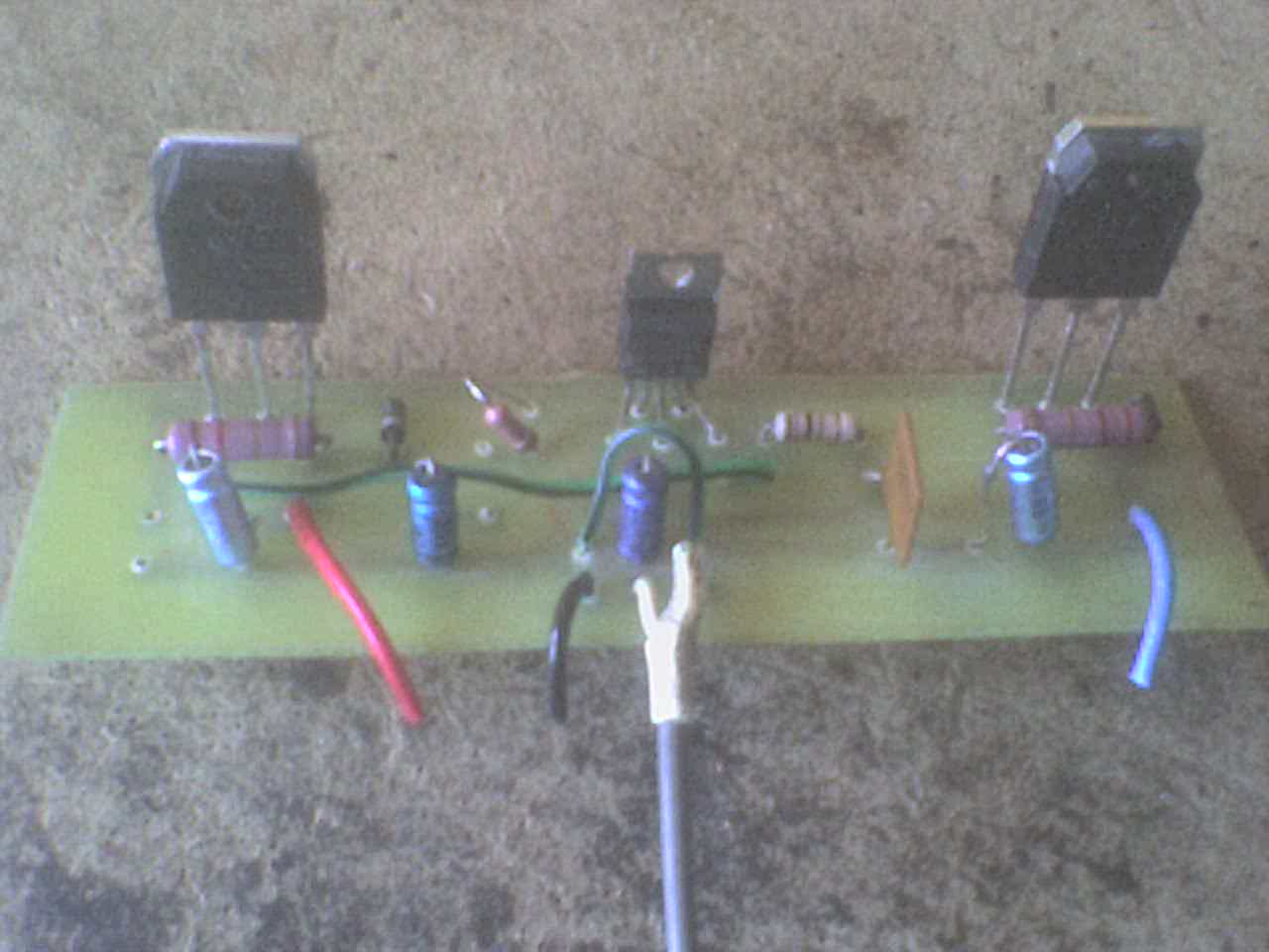 Össze is raktam de nem megyen. Ful hangerön nagyon torzít + nagyon melegszik az IC meg a két tranzisztor.