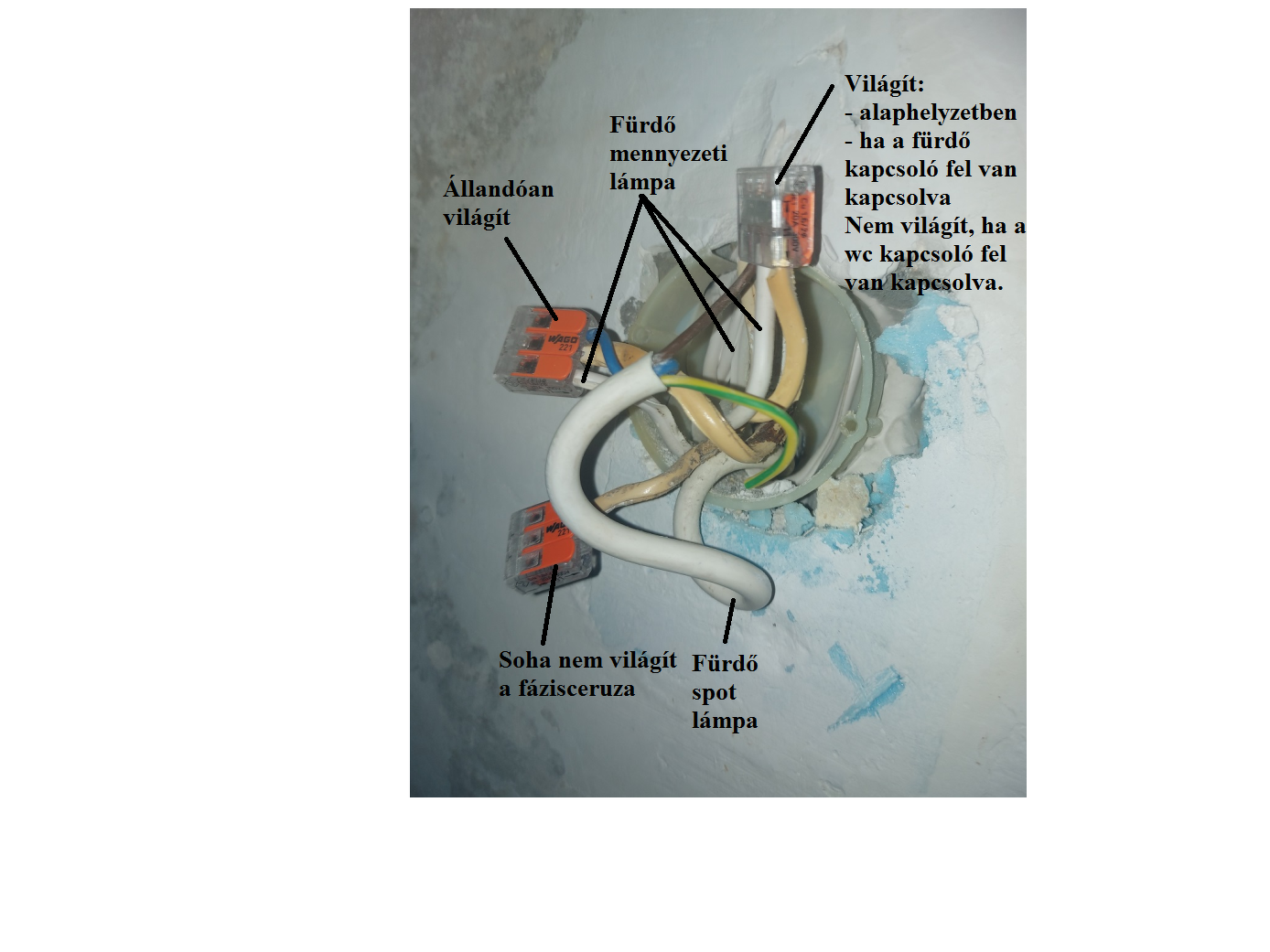 Ahha, köszi az infót . Azonban nem kellene ezt rendesen bekötni, úgy értem, hogy a kapcsoló fázist szakítson illetve a színek is rendben legyenek? Vagy hagyjam a fenébe, kössem be a wc lámpát ennek megfelelően és kész? Köszi! G.