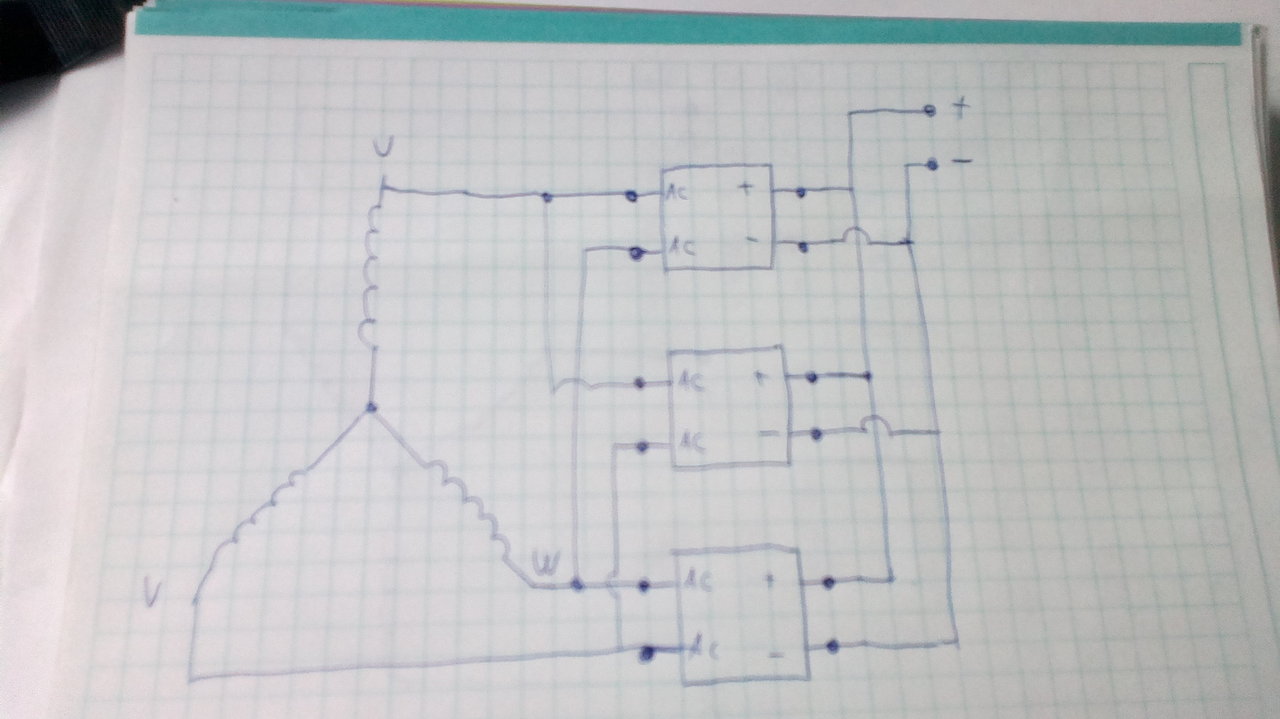 Az lenne a kérdésem hogy háromfázisú váltakozó áramot egyenirányíthatok-e 3db 1 fázisú graetz híddal, úgy hogy fázisonként kötöm be őket. Egy motorkerékpár 3 fázisú váltakozóáramú generátoráról lenne szó. Csillag kapcsolásban vannak a tekercsek, a csillagpont nincs kivezetve.