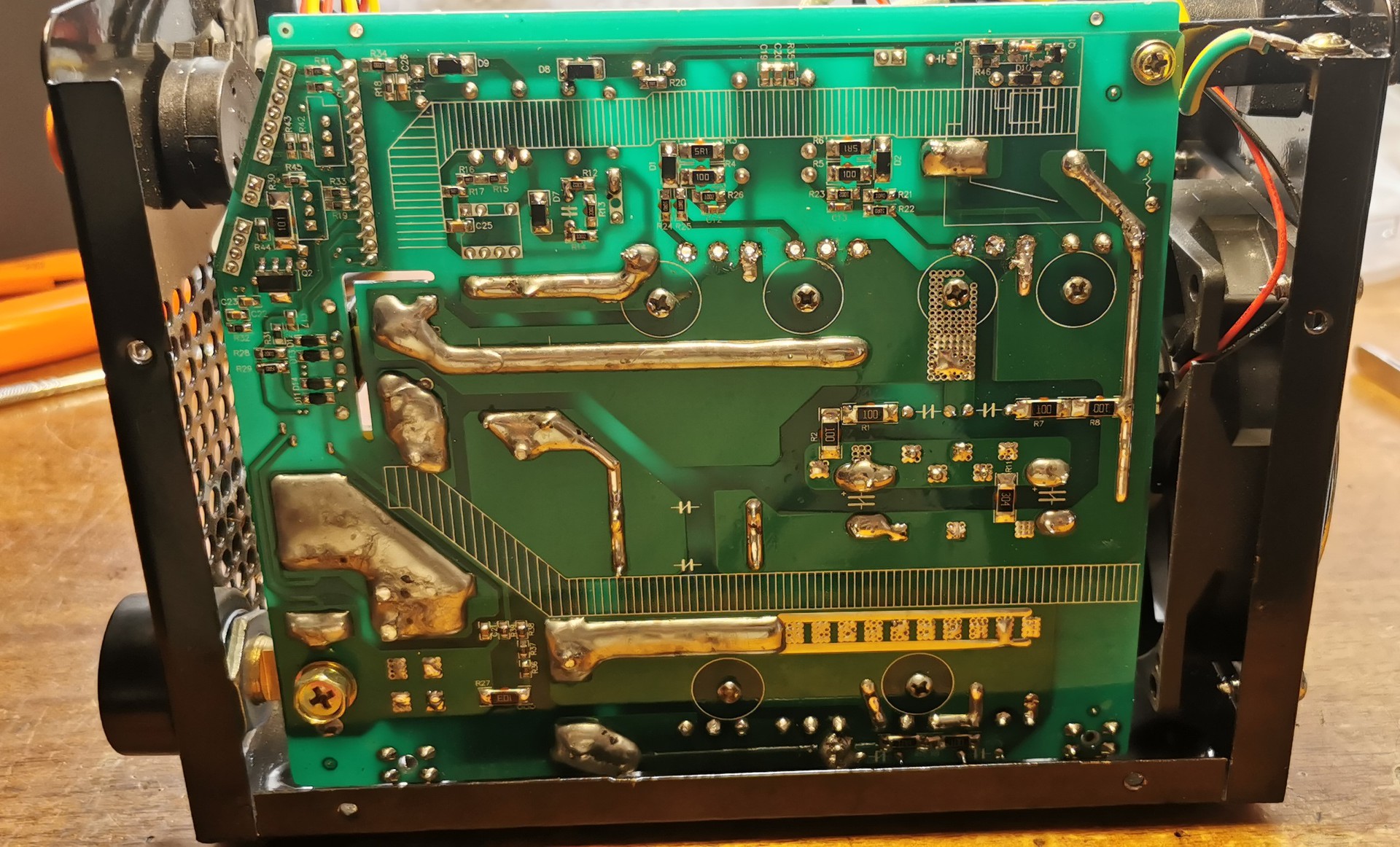 Azért még mindig idegesít , hogy hiába a válogatott alkatrészek , a két oldali vezérlés csak azért sem egyforma! Egyik 5.50 v , másik 5.33 v! Az érdekes ebben az , hogy kiforrasztottam a gate trafó szekunder lábait , és ahol 5.33v tehát a kisebb feszültségű oldalon nagyobb a váltófesz 500mv töblet van a másikhoz képest! Akkor mégis miért azon az oldalon kevesebb az egyenfesz????Nem találok rá magyarázatot , a feteket is felcseréltem már , mondom hátha nem teljesen egyforma, de ugyan az....