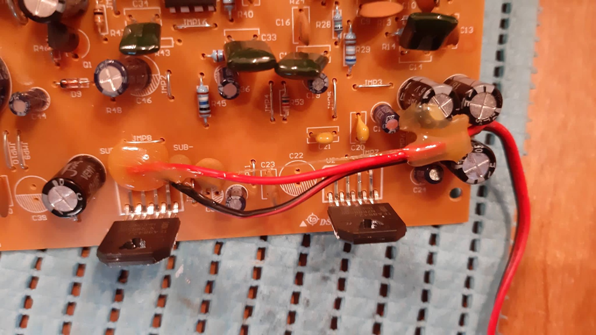 (Közben mértem: Piros vezetéken: 1,30 fekete vezeték: 0,65 elko: 19,70)