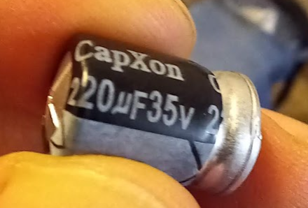 Ohh, még az érték is látható: 220 µF / 35 V.