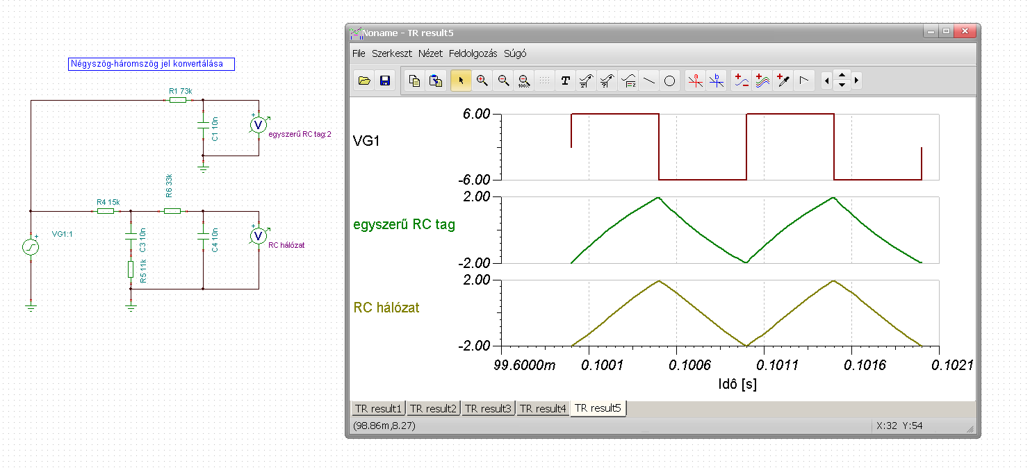 Ha rosszul választom meg az integráló rész időállandóját, akkor nagyon sok idő fog kelleni. amíg elérem a kívánt áramot, vagy pedig az áram erősen hullámozni fog. Ezekkel sosem voltam jó barátságban Tehát az kellene, hogy anjobb oldali műveleti erősítő lassan emelje a kimeneti feszültségét, ha pedig elértük a kívánt áramot, kicsit ejtse a kimeneti feszültséget, és indul az egész elölről, de a második körtől kezdve az áram átlagértéke a kívánt érték, és hullámozni fog az integráló tag miatt (legjobb esetben észrevétlenül kicsit). Szuper, köszi a tippet. Tina-val meg lehetne állapítani az időállandókat is, mondjuk ehhez először a háromszögimpulzus periódusideje kellene, ahhoz találtam egy jó kis műveleti erősítős generátort, csak egy négyszögjel kell neki.