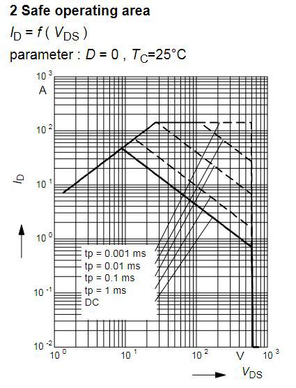 Idézet: „A Fairchild vagy megmérte, vagy csak rajzolt valamit.” A SOA görbe értelmezése témában érdemes megnézni az alábbi videót a TI-től: Understanding MOSFET datasheets: Safe Operating Area (SOA) Ez alapján a feltételezésed helyes, régen a SOA görbét számították, a TI is csak 2014 óta rajzolja a SOA görbe jobb oldali meredeken eső oldalát mérés alapján. Ahol is minden mérési ponthoz egy-egy FET-et eldurrantanak. A kapott mérési pontokra illesztik a görbéket, párhuzamosan, bár nem feltétlen az jön ki a mérésből. Végül 30..35%-kot rátartanak, hogy az adatlap az egyes FET-ek szórása ellenére mindegyikre igaz legyen. Ami látszik a régi adatlapi görbéken, hogy a nincs még egy töréspont a jobb oldali szakaszon ami a power limit és a thermal instability között lenne, hanem valószínűleg a power limit alapján megrajzolták a görbét, és ez így nem is teljesen fedi a valóságot. Azaz nagyobb feszültségeknél még nagyobb rátartással kell használni őket.