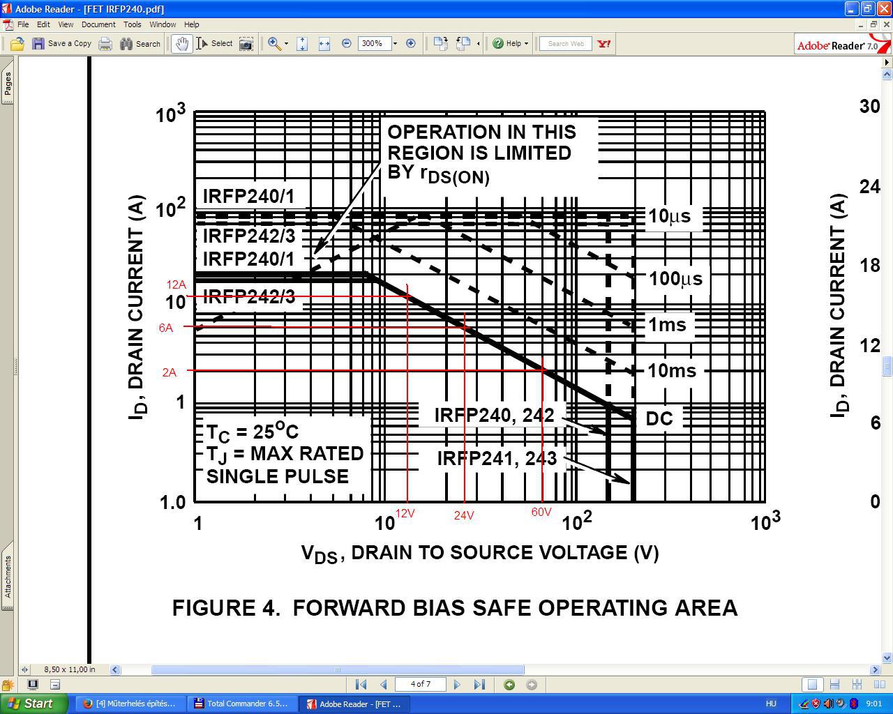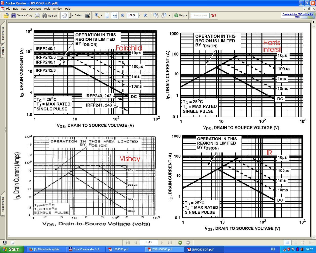 Idézet: „So TI has gone out and actually acquired a very powerful SOA tester that all devices released since 2014 are measured. And all devices released prior, we are going back and retroactively measuring these lines to make sure that our calculations were valid. But if you look at competitors' data sheets, older data sheets almost always were calculated.” Az IR embere meg nyilván tudta, ők mit használnak. Megjegyzem valamikor az IR is átrajzolta a SOA görbét pl. az IRFP240 adatlapjában, mert legalább 2 verzióban létezik, és nem fedik egymást. Lehet, hogy ez a mérés után történt, és előtte ők is csak számították.