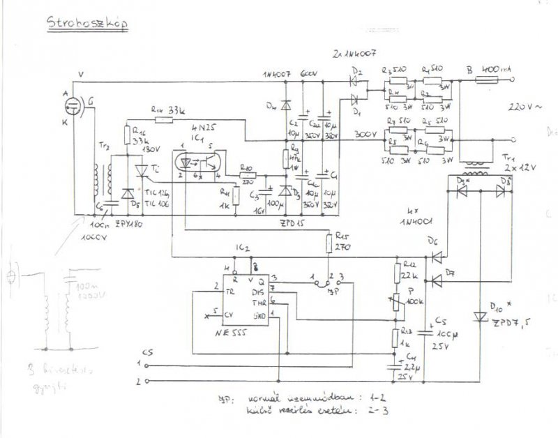 3V-os gombelemmel is működött, gondolom, akkor ez is jó oda. Mekkora kondik kellenek, és hogy kellene bekötni őket? Ez a stroboszkóp van mellé rakva, ebből gondoltam, a tápot levenni. Bővebben: Link