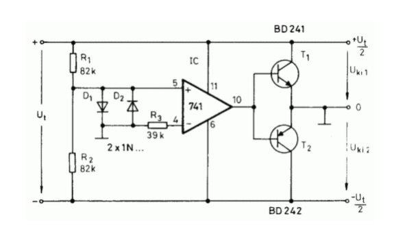 A kapcsolás leginkább arra alkalmas, hogy féltápfeszre hozzon létre virtuális földpontot néhány 100mA-es - jó nagy hűtéssel esetleg amperes - nagyságrendben. A kívánt feladatra funkcionálisan még akár alkalmas is lehetne, de a 100Ah-s akkupakk 100A-es nagyságrendű áramával nem fog elbírni. Nincs olyan alkatrész, amit ebben kicserélve alkalmassá tehető a kijelölt feladatra sajnos.