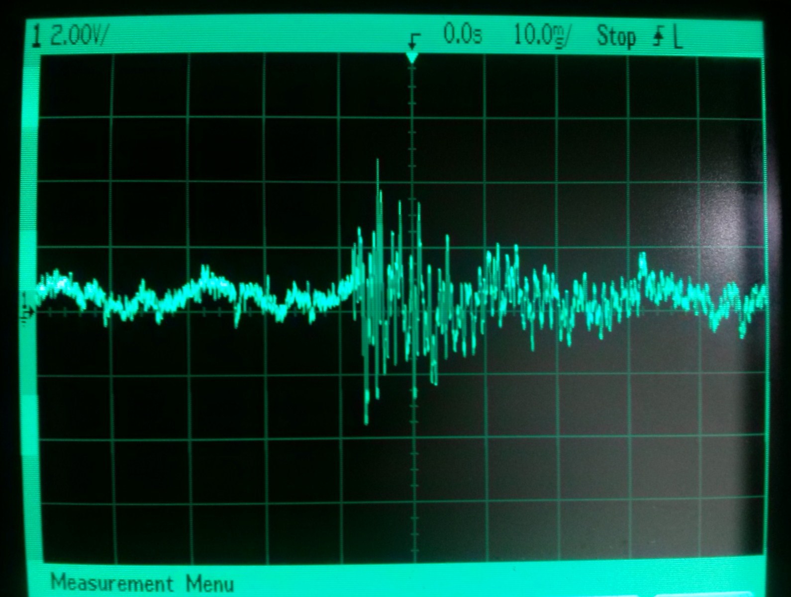 Játszottam a B and K mérőerősítővel (szkóp fotó). A VAS fokozat kísérleti paneljének kimenetén néztem a zajt és véletlen kiesett a kezemből a nyák, miközben a szkópot néztem. És mintha láttam volna valami furcsát. (100 dB-lel van felerősítve a kimenet jele.) Elkezdtem kopogtatni a nyákot. Nem volt könnyű "elcsípni" tároló szkóppal sem a pillanatot. Nem mese, hogy létezik az akusztikai visszahatás jelensége a félvezetős erősítőknél is. Ezt én eddig is tudtam, de most mindenki láthatja a saját szemével, amiről már többször írtam különböző topikokban. Az erősítők hangjának hallható megváltozása bedobozolás után... állványok, tüskék saját hangja. Ezeket ugyan már nem lehet kimérni, de meghallani annál inkább. Mint a fotón látszik, a lecsengés elég hosszú, minimum 50 ms.