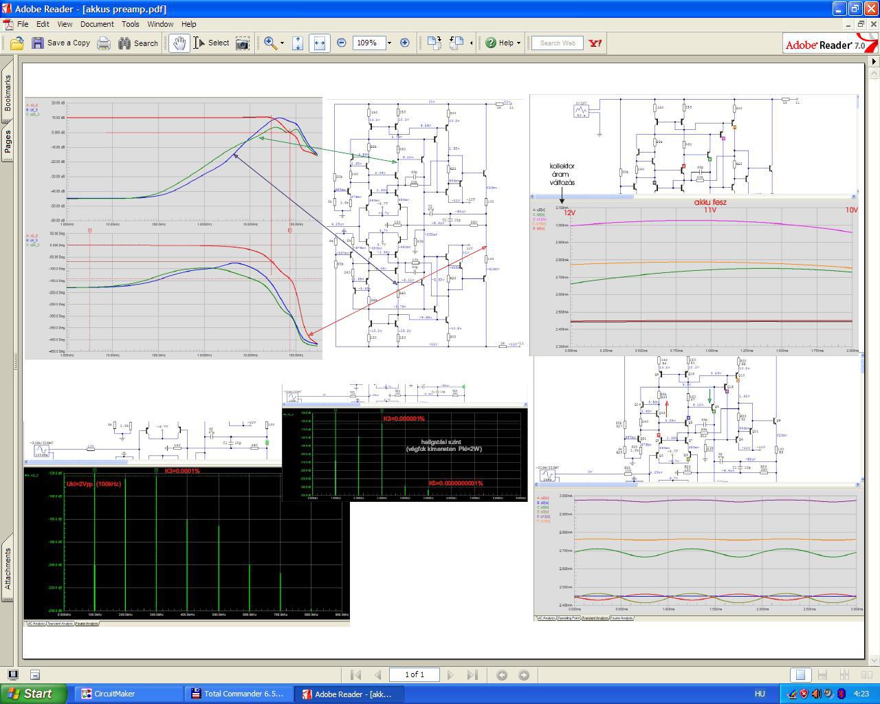 1969-ben készült az első változata ennek az erősítőnek (oda van írva, onnan tudom). Akkor talán még számológép sem volt. Már régebben leszimuláltam ezt a 22.5 kHz-es aluláteresztőt. Elképesztő. Szerintem. Számomra. És ez a gyakorlatban is ilyen. 22 kHz-ig teljesen lineáris az átvitel, majd kicsit feljebb nyomtalanul eltűnik a jel.