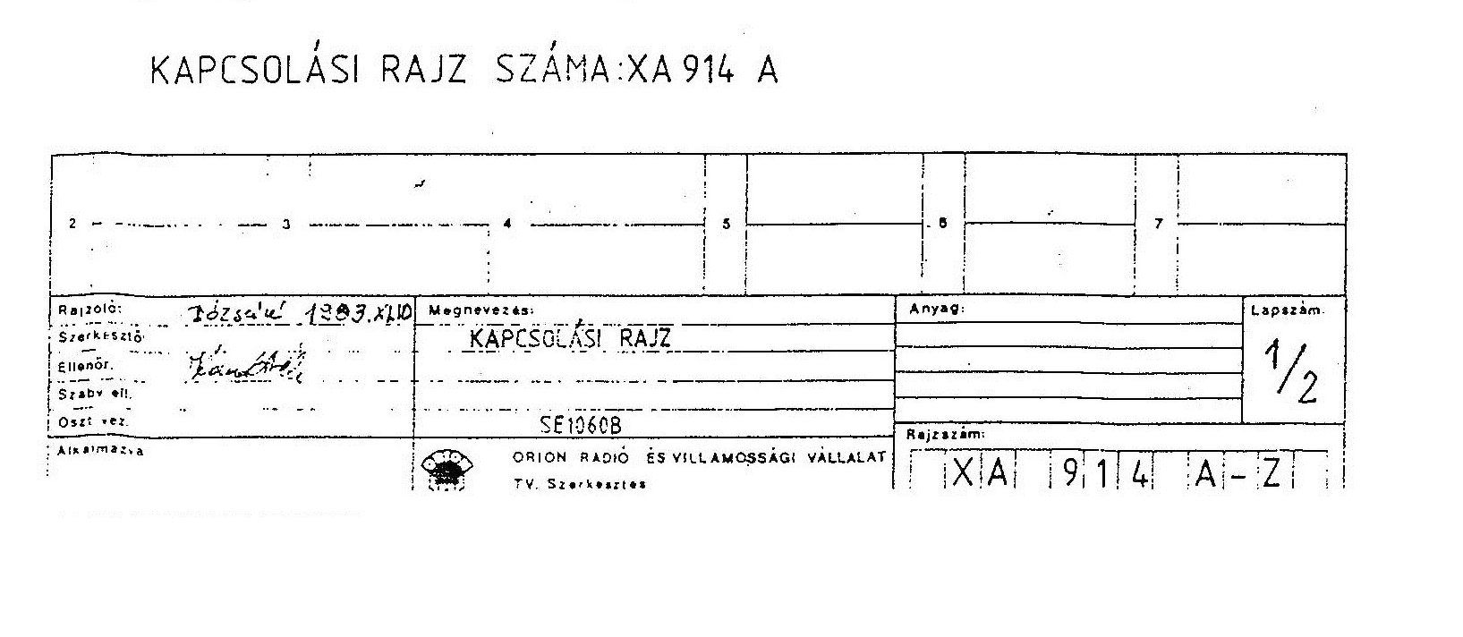 A hitetlenkedőknek felteszem a rajz fejlécét, hogy nem kamu a készülék. Sajnos sokan átbarkácsolták egyéb nem gyári feliratokkal csúfították el az Orion gyár készülékét. A Magyar Rádióban a stúdiókban használták őket selejtezésükig.