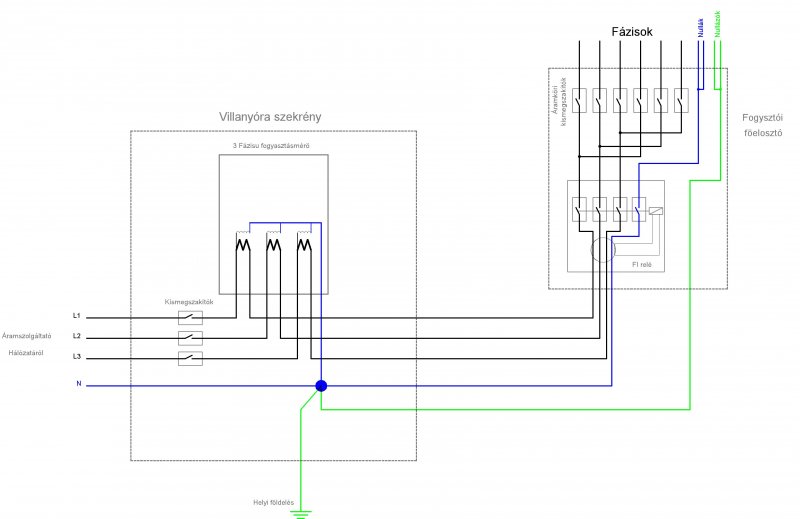 Mindig 3 fázis van a rendszerben, ezzel gazdálkodnak. Az, hogy valakinek csak 1 van, akkor 1-et kötnek be. Igyekeznek szimmetrizálni a terhelést, ezért figyelnek arra, nehogy az egyik túl legyen terhelve...