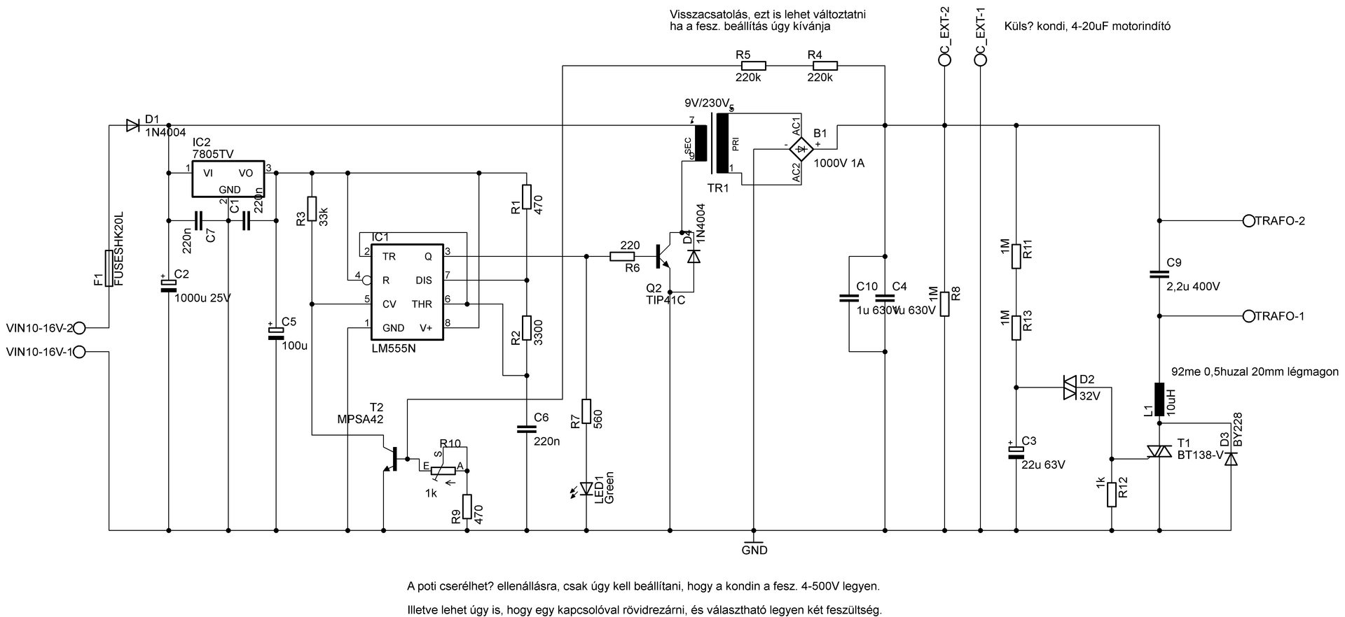 Szeretném kérdezni,hogy az alábbi kapcsolást meg építette-e már valaki és ha igen, akkor mik a tapasztalatai? Valamint ha az inverter részt és a vissza csatolást elhagynám és az inverter trafó helyére csak egy 230v/230v-os leválasztó trafót tennék, akkor mennyiben változna a működése? Persze nem autó trafó lenne rajta, hanem olyan mint a gyári pásztorokban.