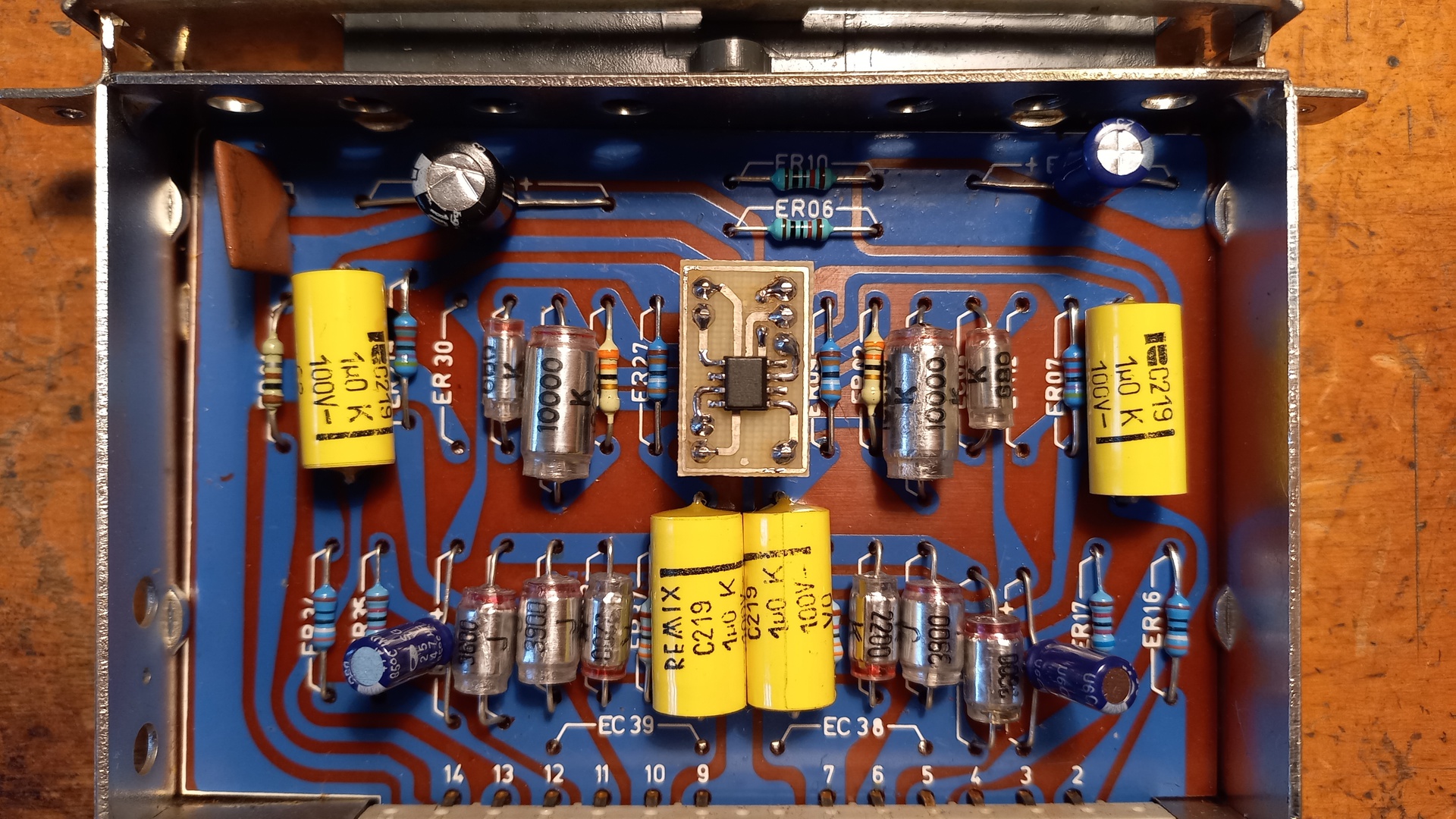 Az áramkör lelke a uA739/TBA231 helyére beépített LM833-as IC, ehhez kell egy kis átalakító panelt kell gyártani, vagy ebay-ről kell megvenni.