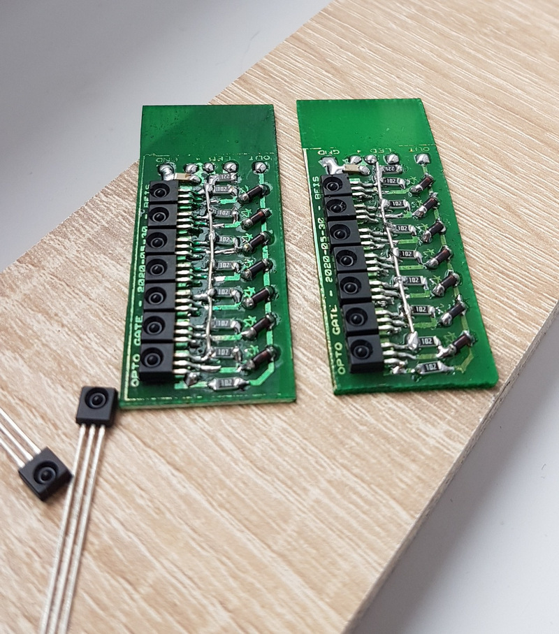 A sebességmérésnél amit írsz, lényegtelen pontatlanságot ad (egy légpuskagolyó sebességénél kb. +/- 0.5m/s), illetve a szenzorok határfrekije is ebben a tartományban van (kb. 200kHz), így nem foglalkoztatott. (Adottak voltak a ~20 évvel ezelôtti melóhelyemrôl mentett IR vevôk, bezúzták volna ólommentesre átálláskor) Ezeknek a paraméterei alkalmasnak tûntek (azaz nem csak a lencsénél érzékelnek hanem akár háttal is).