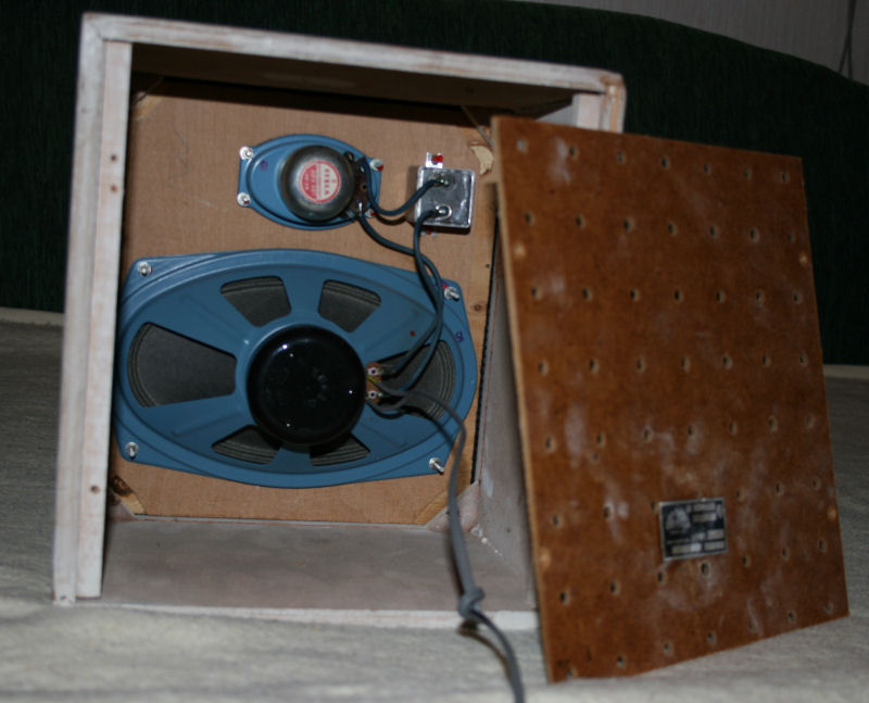 Nincs benne semmi csillapító anyag, a hátulja is csak ez a lyukacsos fa lemez. Eléggé dobozhangja van, és a mély nagyrésze "hátul távozik".