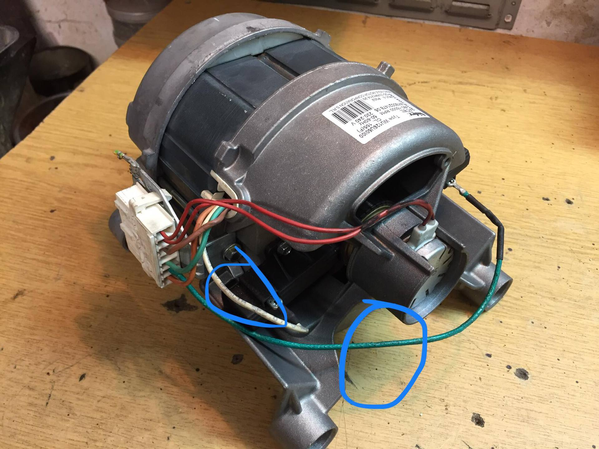 Segítséget szeretnék kérni, hogy hogyan kell bekötni a képeken látható mosógép motorját. Gondolom, hogy tengely végén egy fordulatszám érzékelő van, ennek pirosak a kivezetései, de ezzel egyenlőre nem szeretnék foglalkozni. A kékkel bekarikázott kábelek csatlakoznak a két szénkefére. A motor típusa is látszik a képeken. Köszönöm a segítséget előre is!