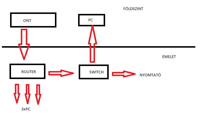 Ez a verzió elvetve.Most pontosan úgy néz ki a hálózatom, ahogy itt lerajzoltad. Majdnem jó, csak a WiFi nagyon lassú az emeleten (a földszinten egyáltalán nem használjuk). Idézet: Két mondatban ÉS egy pici rajban kifejtenéd, hogy ez az állapot hogy nézne ki, és milyen hátránnyal járna? (az egy port veszteséggel együtt tudnék élni) „Másik megoldás, hogy lemondasz a routolásról és egy tartományba lesz minden PC, viszont igy vesztesz egy portot a routeren (a router is switchként fog működni) és csak 3 eszköz csatlakoztatható.” Ha már ennyit fáradtatok velem, még ezt az egyet légyszi.
