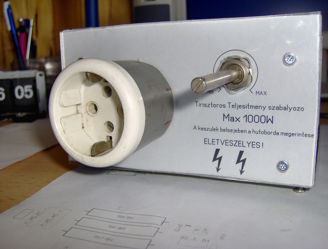 Én elkészültem a panelfúróm tirisztoros teljesítményszabályozójával :yes: Egy PC táp dobozába került bele. Az elején a potinál lévő lyuk reszelésére nem vagyok büszke de a forgatógomb majd eltakarja. A rajzért és a segítségekért hála FERCINEK! üdv!