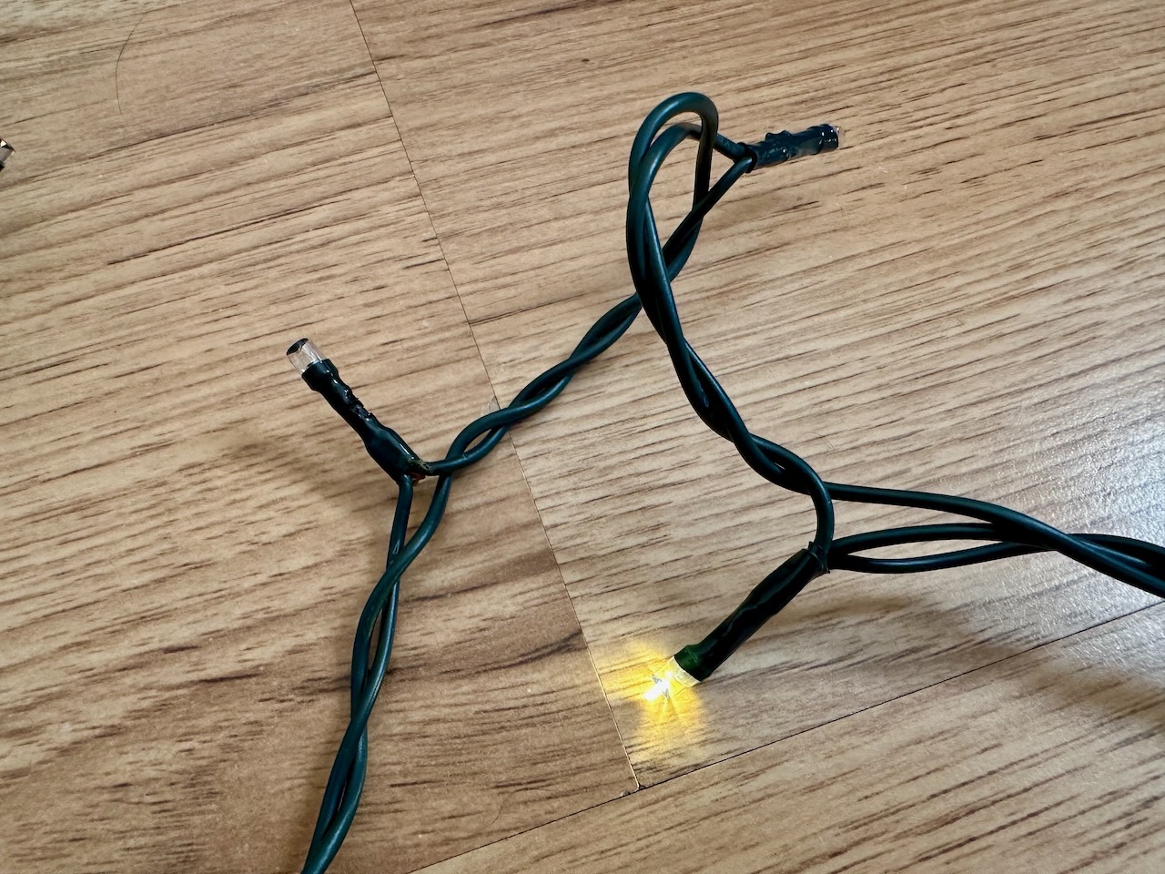 Remek gondolat a pótlás mástól való megoldása. 2 izzósorról van szó, amiből az egyik biztosan 35 db-os (ebből csak kettő nem világít, ezért ezt nem is piszkáltam), a másik pedig talán 16 db-os (délután ezt pontosítom ha hazaérek), amiből már 6 db nem világít, ezért ezt egészítettem ki egy soros diódával. Egyébként a két izzósor az izzók számának eltérése ellenére azonos hosszúságú (kb. 5 m), csak a több izzóson kb. 15 cm-re, a másikon meg kb.30 cm-re vannak egymástól a fények. Ha valakinek van otthon "levetett/kidobásra ítélt" hasonló égősora, és meg tud válni a benne lévő fényforrásoktól, akkor ezeket szívesen elfogadom. Elsősorban színesek lennének jók, de néhány fehér is elfér.