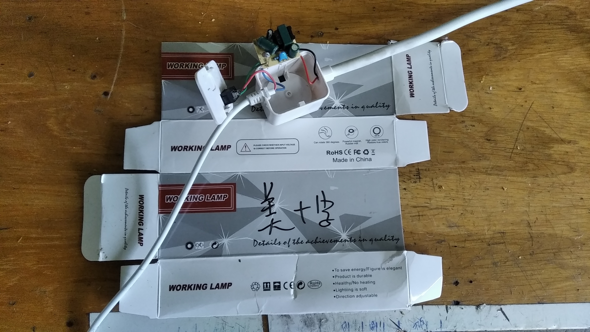 Ez az a munkalámpa, aminek a doboza szét van terítve?