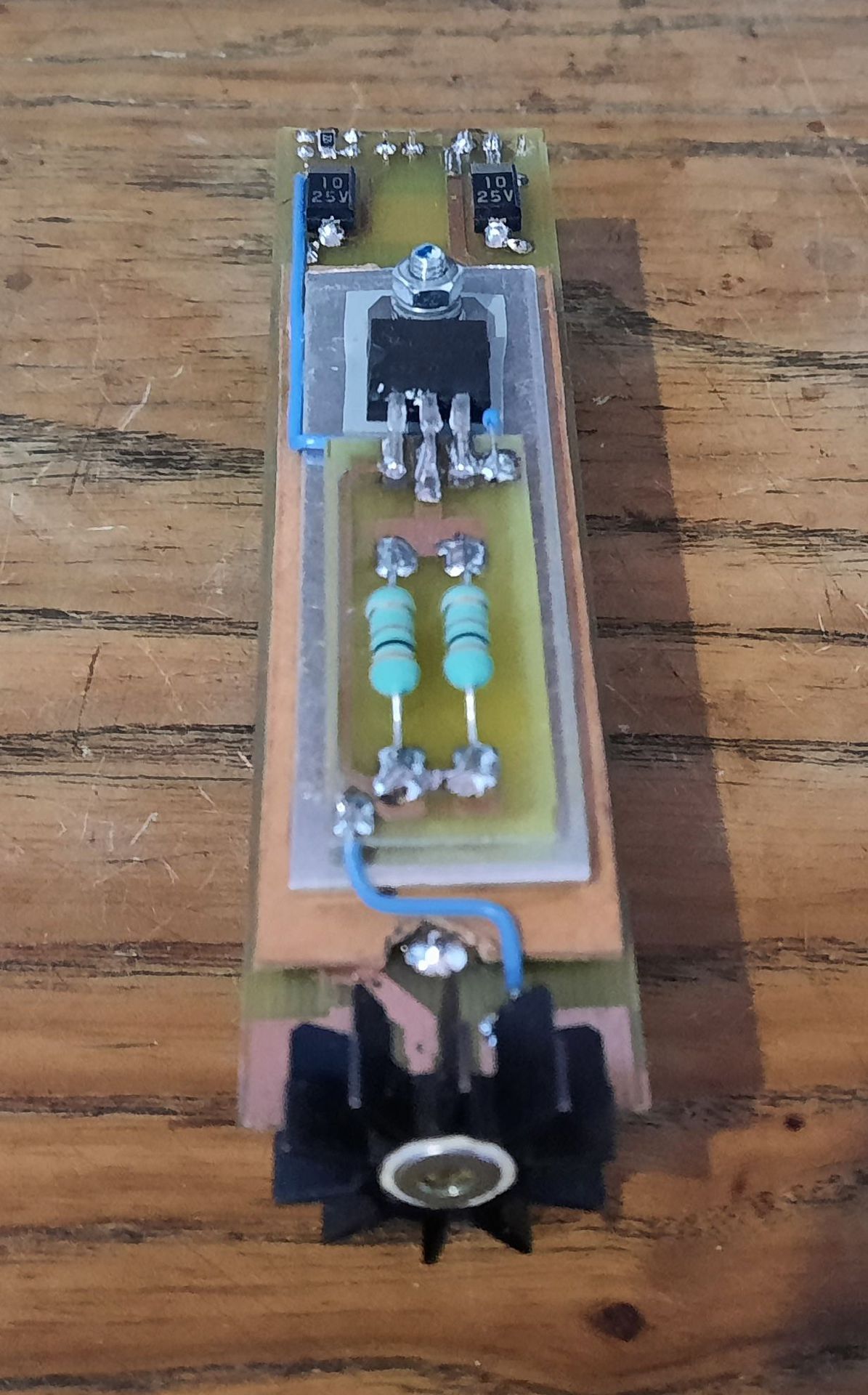 A lézer diódát egy TO5-ös hűtőcsillag hűti, de egyáltalán nem forró. A legmelegebb rész az LM317 alatt lévő alumínium hűtő felület, de ez sem forró, simán tapintható tartós üzem mellett is.