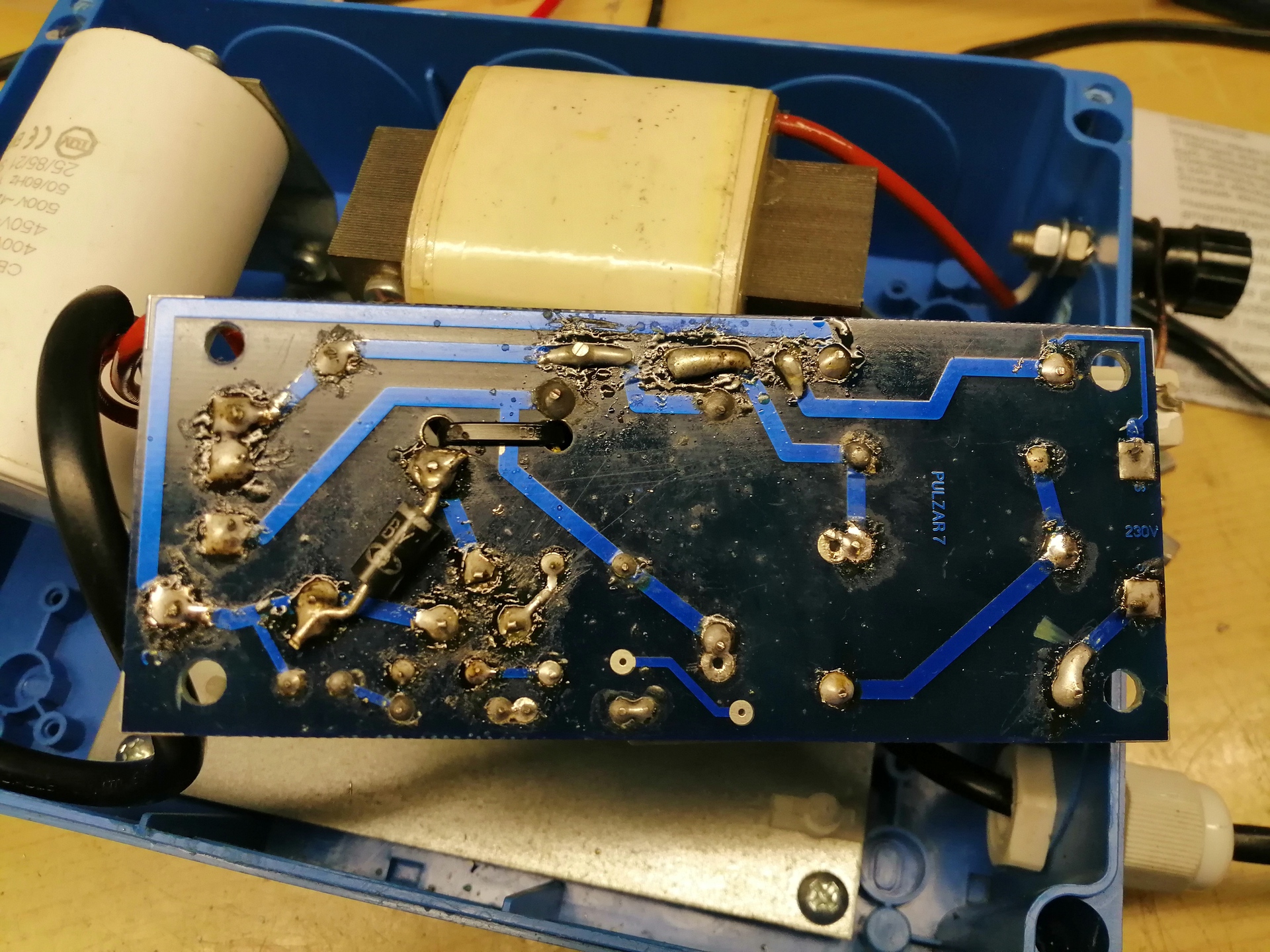 A képen látható villanypástor kapcsolás, hozzám is eljutott. Olyan problémával, már több alkalommal, hogy az alul látható diódákat ki nyírja. Egyébként, nagyon jó hatásfokkal működik. A mási oldalról is tettem fel képet. A kettő, nem ugyan az. A kapcsolási oldalról készült képen lévő van nálam.