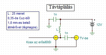 Ezekhez volt egy dugasztáp, ami a tv-be menő koaxcsatlakozóba torkollott, anélkül az erősítő nem kap tápot.