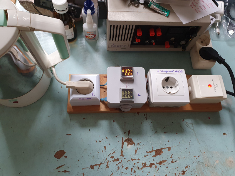 Nem kell, hogy leválassza, ha lekorlátoz és látom a jelzést, rögtön lekapcsolom. A kismegszakító "érzékenyítése" nem jó, mert tehetnék a körbe kisebb értékűt is, de tapasztalatom, hogy az 5A-es kioldásával egyidejűleg lekapcsol a 10A-os is. Arról nem is beszélve, hogy 2000W már 8A fölött "teljesít", tehát jó gép esetén is lekapcsolna a kisebb értékű! Vajon mi lehetett a régi labor asztalokban?