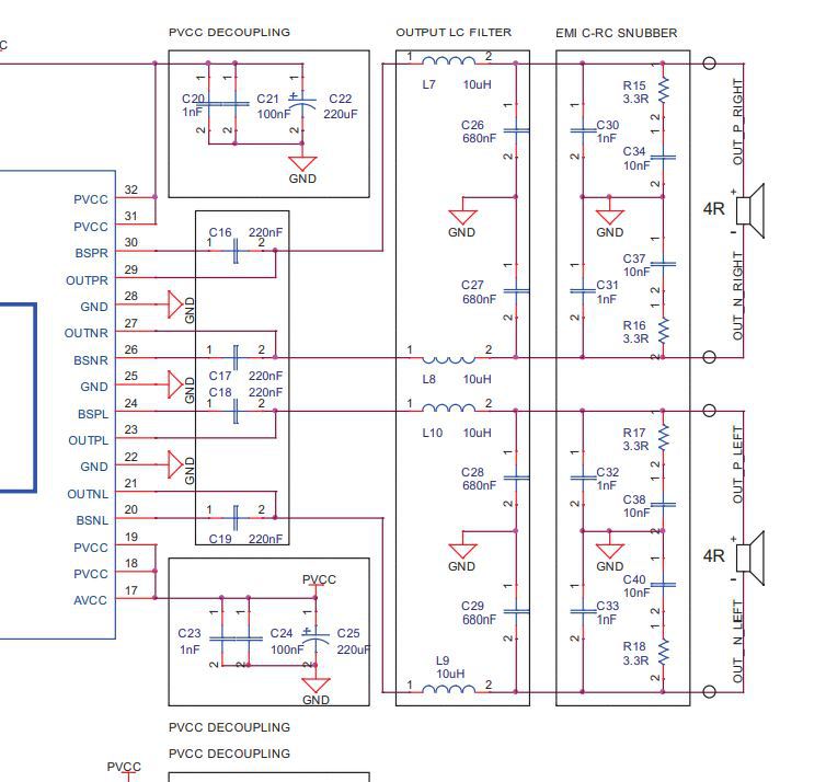 Annyira nem kell hajszál hasogatni az értékeket, mert a hangsugárzó impedanciamenete sokszorosan felülírja az elméletet. A kimeneteken ott van amúgy a Zobel tag? Itt nagyon fontos hogy legyen. Ha nincs, pótolni kell, ugyanis a kimeneti LC kör nem fog csillapodni, hiába van rajta hangszóró. Hosszú hangszóró vezeték esetén 400kHz-en már nem számít hogy mi van a végén.