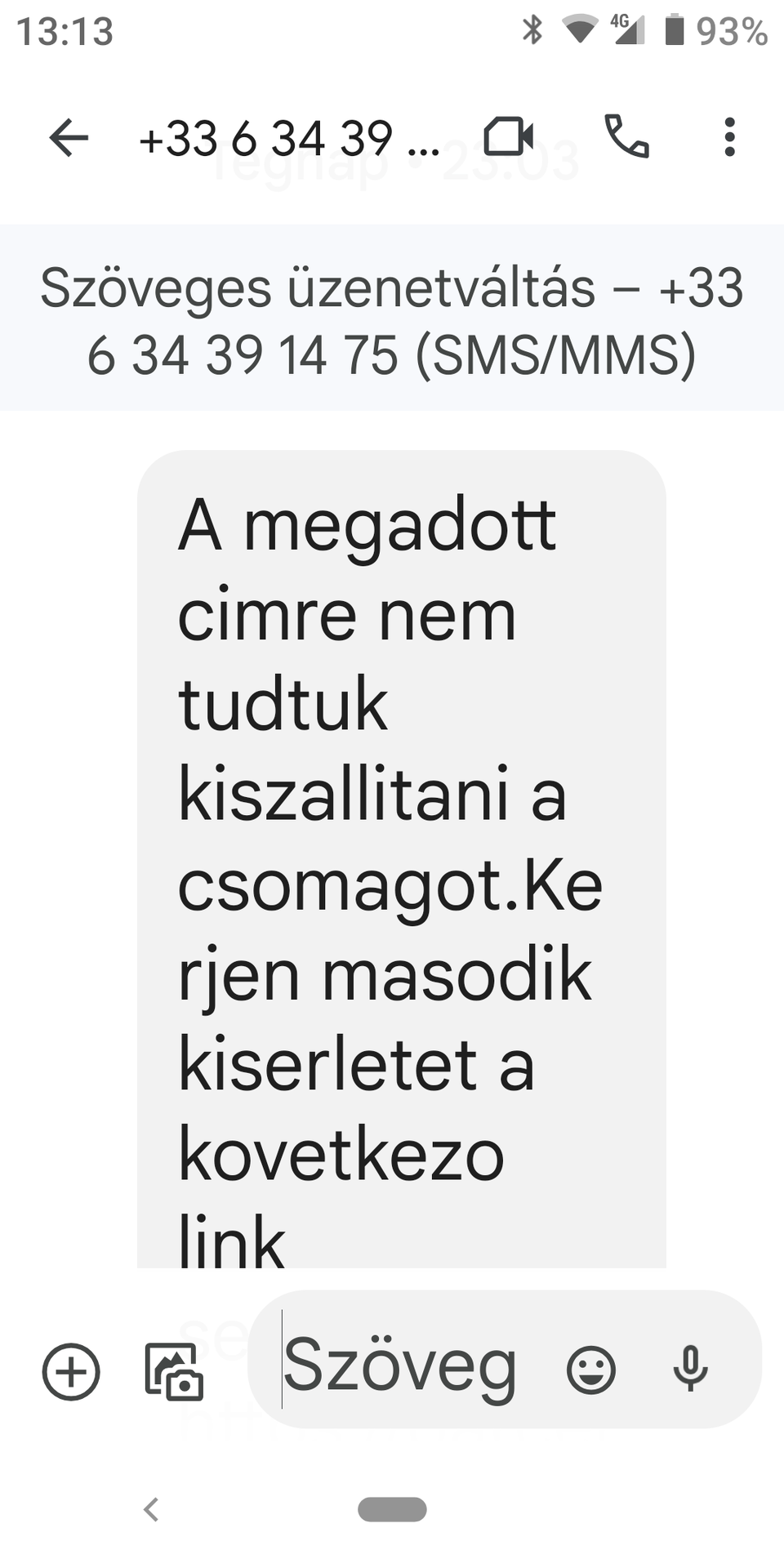 #1: A +49 178 ... telefonszámról, egy kamu DHL oldalra küld (ami egy blogspotos oldal). Csupán hétszázvalahány forint vámkezelési költséget kérnek. Valamint az összes bankkártya adatot.
