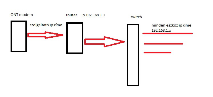 Ez a verzió elvetve.Most pontosan úgy néz ki a hálózatom, ahogy itt lerajzoltad. Majdnem jó, csak a WiFi nagyon lassú az emeleten (a földszinten egyáltalán nem használjuk). Idézet: Két mondatban ÉS egy pici rajban kifejtenéd, hogy ez az állapot hogy nézne ki, és milyen hátránnyal járna? (az egy port veszteséggel együtt tudnék élni) „Másik megoldás, hogy lemondasz a routolásról és egy tartományba lesz minden PC, viszont igy vesztesz egy portot a routeren (a router is switchként fog működni) és csak 3 eszköz csatlakoztatható.” Ha már ennyit fáradtatok velem, még ezt az egyet légyszi.