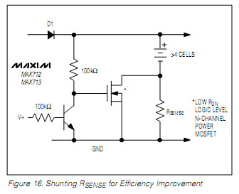 Tehát a kapcsolás amíg tölti az akkut, addig az ellenállást nem zárja rövidre azért, hogy tudja mérni az áramot. Ha viszont megszűnik a betáp, akkor a mosfet gate-jét az akkufeszültség a 100k ellenállások keresztül felhúzza (ugye itt áram nem folyik, vagyis az akkut nem meríti), tehát a sönt rövidre lesz zárva, és így nincs veszteség a söntön.